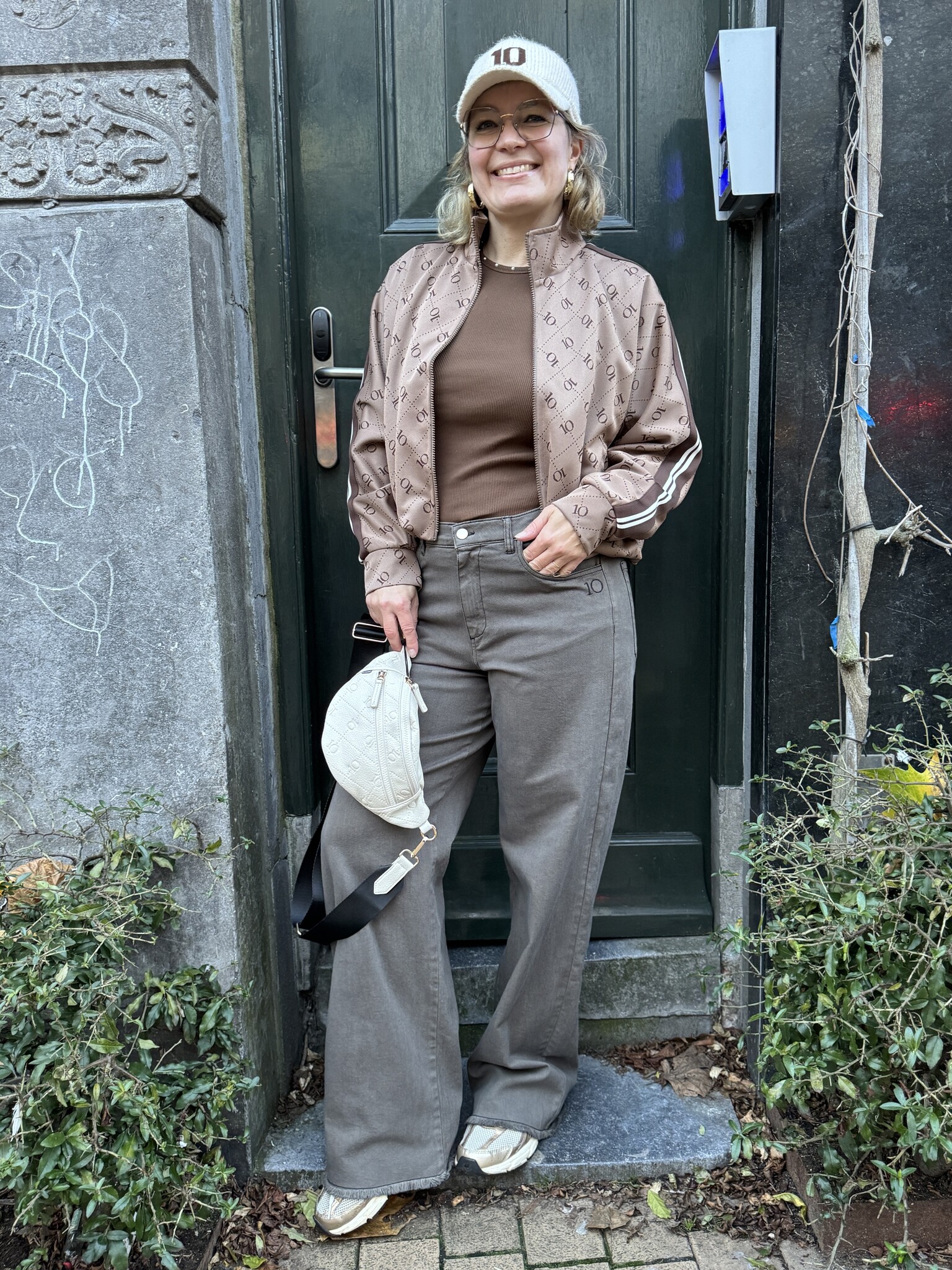 Gave jog jeans van 10days. Zit heerlijk en staat mooi met bruin, ecru of een kleurtje erop. Hij is van organic cotton en elastaan (2%). Hij valt op maat met een casual fit. Zit je tussen 2 maten neem de kleinste. Sybien draagt s. De zoom is onafgewerkt.
