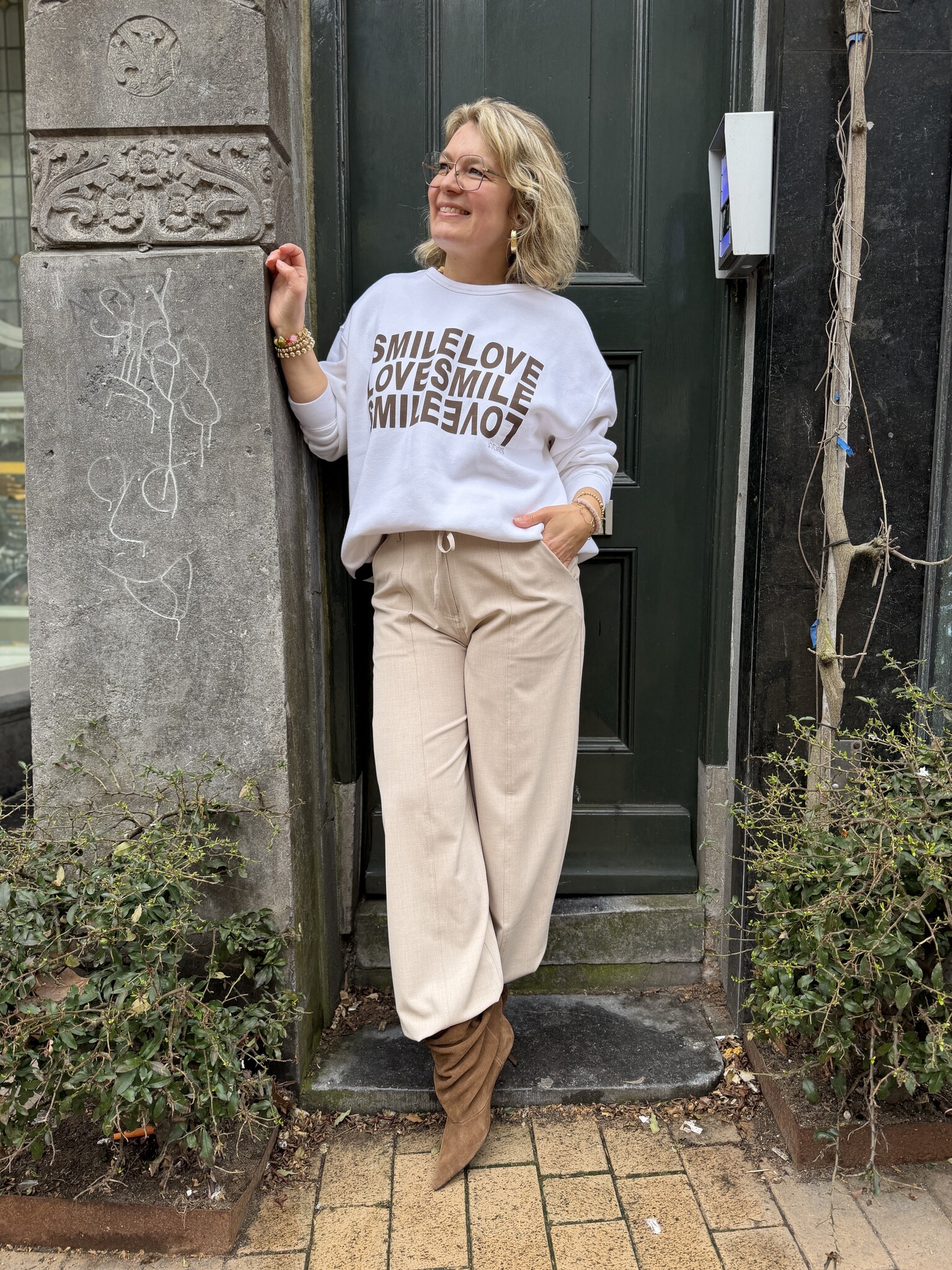 Aan verlanglijst toevoegen10DAYS10days S262 statement sweater smile white(0) €129,90 Niet op voorraad XS S M L XLSize: *XSSMLXLNiet op voorraadInloggen voor wishlistGratis verzending Vanaf €100,-BeschrijvingDelenSuper leuke statement sweater van 10days wit met bruine letters. Hij valt oversized, wat ook het model is. Het is een wat langer model. Je kan een maat kleiner nemen. Sybien draagt s. Facebook WhatsappToevoegen aan vergelijking
