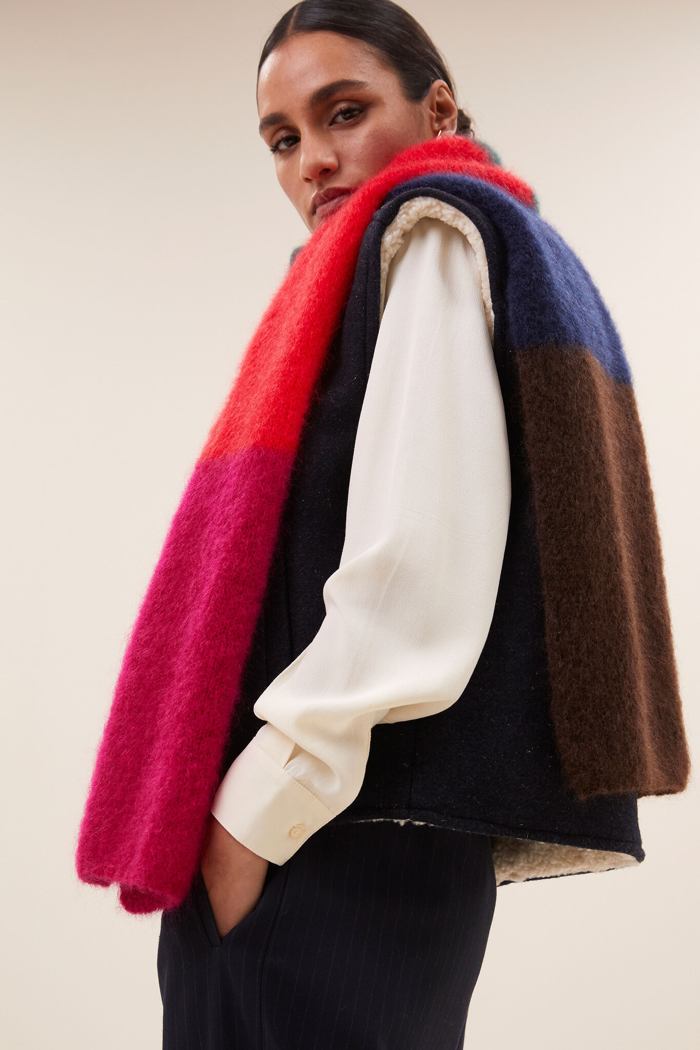Fantastische sjaal van By Bar. Prachtig bij navy, zwart, bruin. Past bijna overal bij. Mooie wolkwaliteit bijna 100% wol! 82% mohair RMS - Certified by CERES-1502, 16% polyamid, 2% elasthane