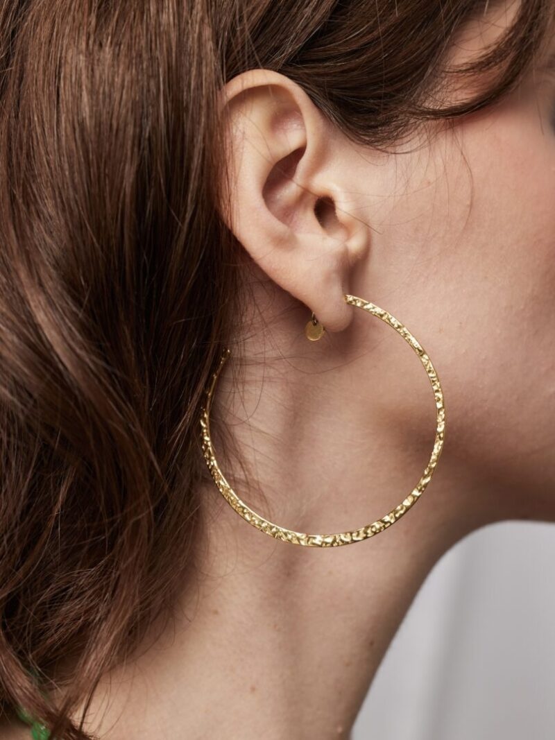 Ellen beekmans platte gehamerde oorringen large (6.2cm)