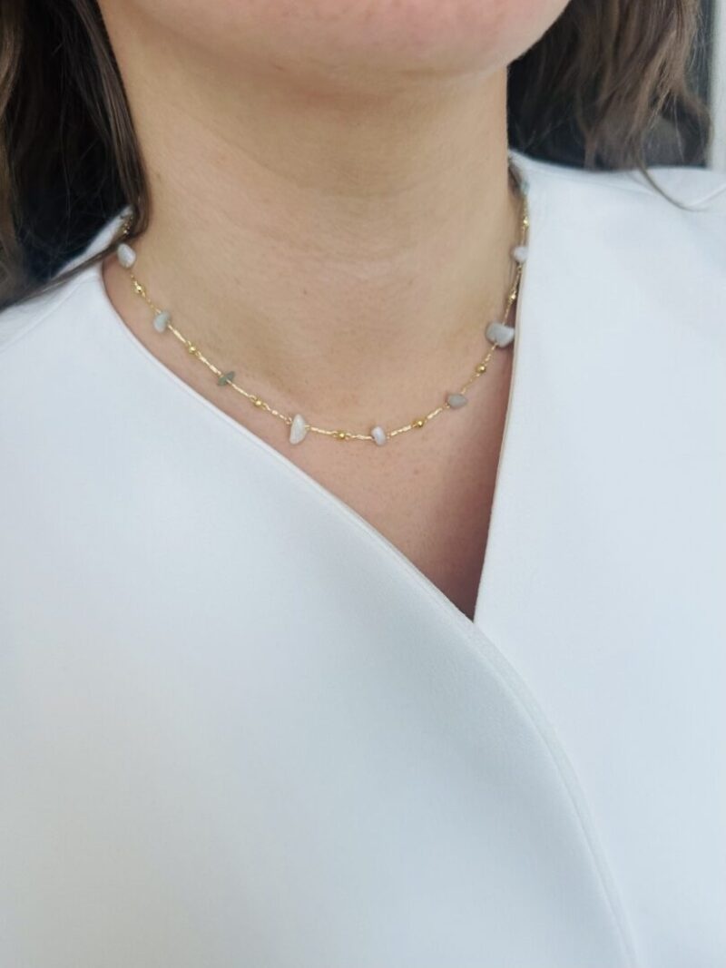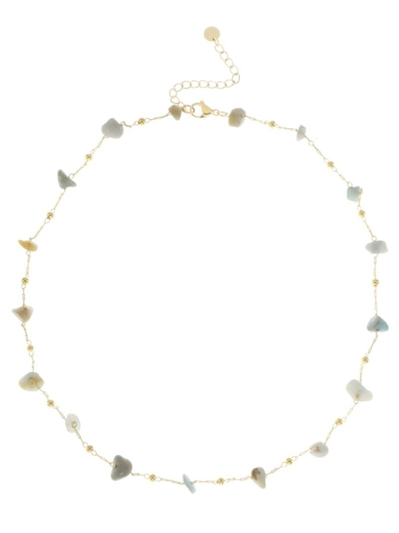 Ellen beekmans fijn kort kettinkje met ongelijke edelsteentjes zeegroen