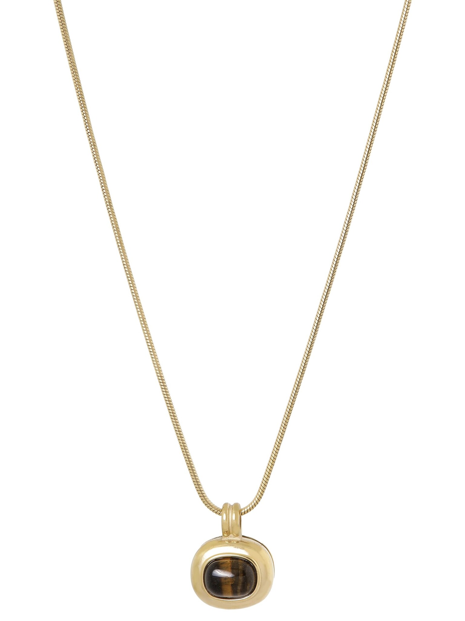 Ellen beekmans lange ketting met gouden hanger met gemstone bruin