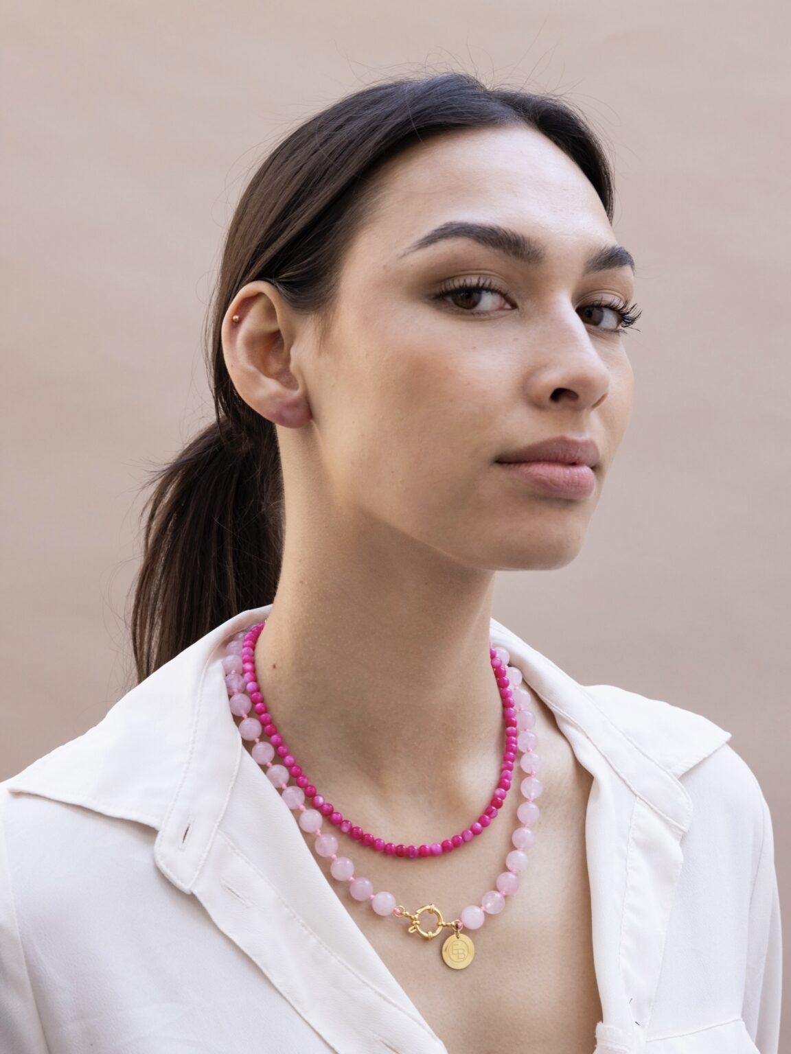 Ellen beekmans ketting met gemstone hanger roze