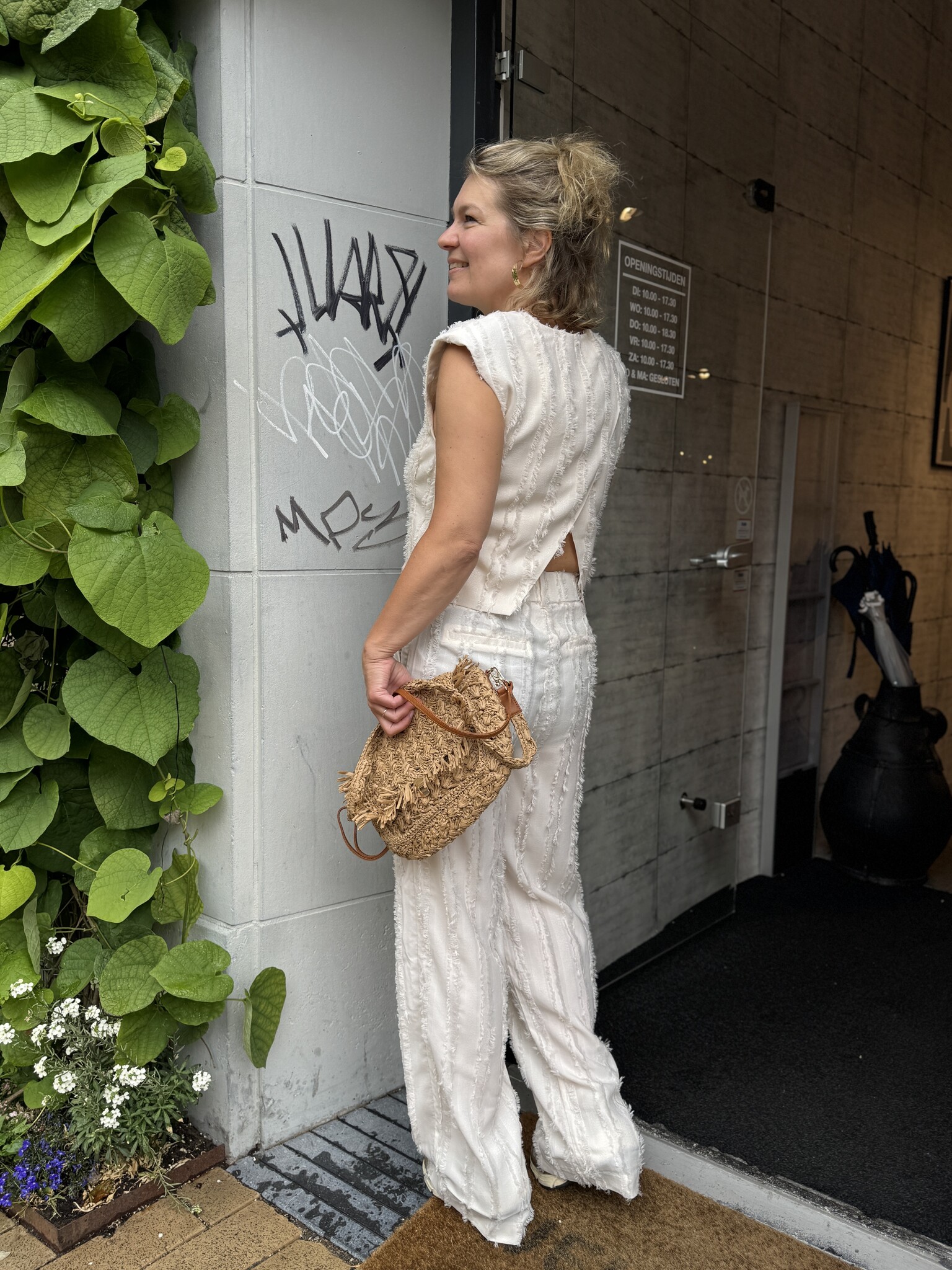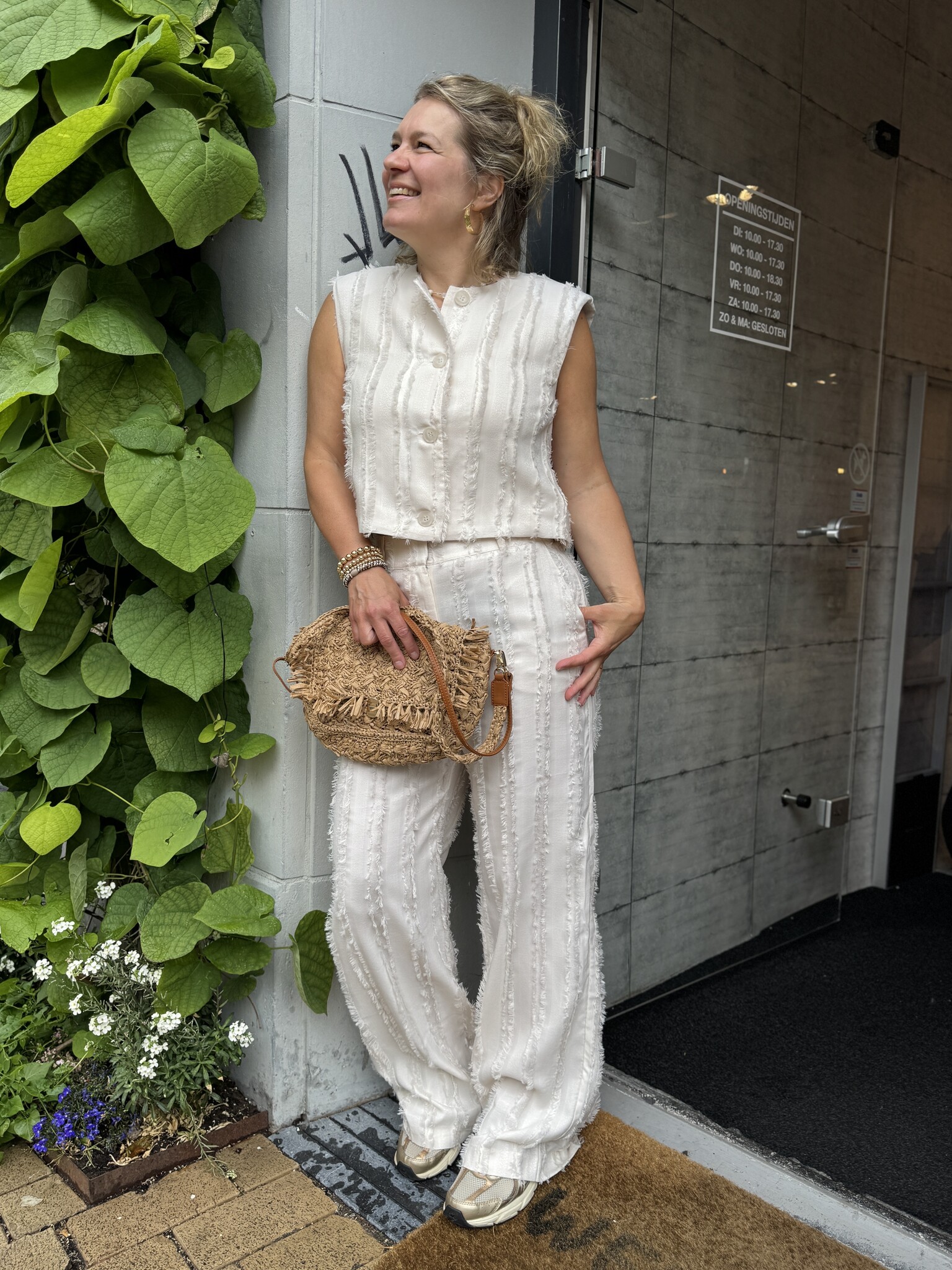 Sale-50%Aan verlanglijst toevoegenDante6Dante6 jules fil coupe pants butter cream(0) €89,50 €179,00-50% Op voorraad 36 38 40 42Size: *36384042Toevoegen aan winkelwagenInloggen voor wishlistDirect betalenGratis verzending Vanaf €100,-Vandaag verzonden? Je hebt nog 00 : 00 : 00BeschrijvingDelenMooie pantalon vam Dante6. Het is een setje met het gilet. Maar ook leuk met ene truitje erop. Draag het met een hakje netjes of voor een feestje.. Hij valt op maat, niet ruimer. Sybien draagt 36, zat aan de strakke kant. Facebook WhatsappToevoegen aan vergelijking