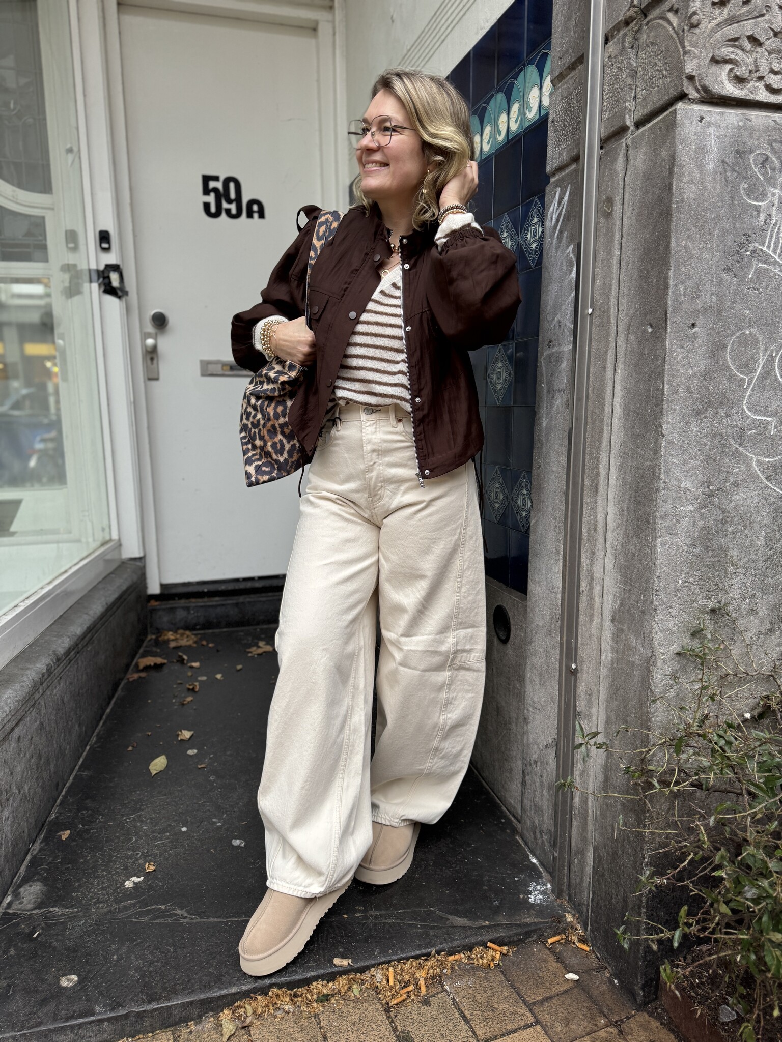 Aan verlanglijst toevoegenDante6Dante6 mindy sheer cropped jacket chocolate brown(0) €179,00 Niet op voorraad 34 36 38 40 42Size: *3436384042Niet op voorraadInloggen voor wishlistGratis verzending Vanaf €100,-BeschrijvingDelenSuper leuk blouse jasje van Dante6. Dunne lyocel stof. Je draagt er nu een lekker wollen truitje onder, straks een mooie top. Je kan hem aansnoeren in de taille en valt losjes op maat zoals bedoeld. Zodat hij een beetje bloest. Sybien draagt 36. Facebook WhatsappToevoegen aan vergelijking