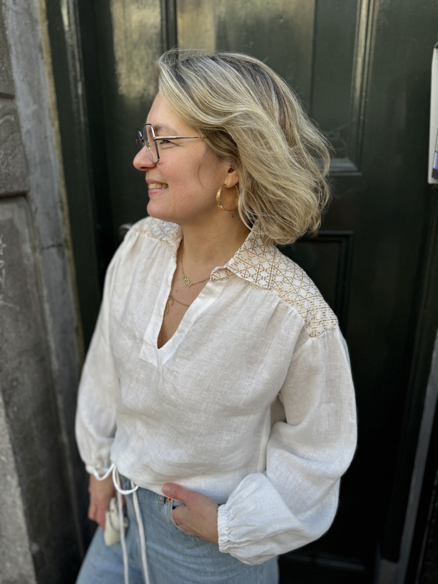 Greek archaic kori blouse white gold