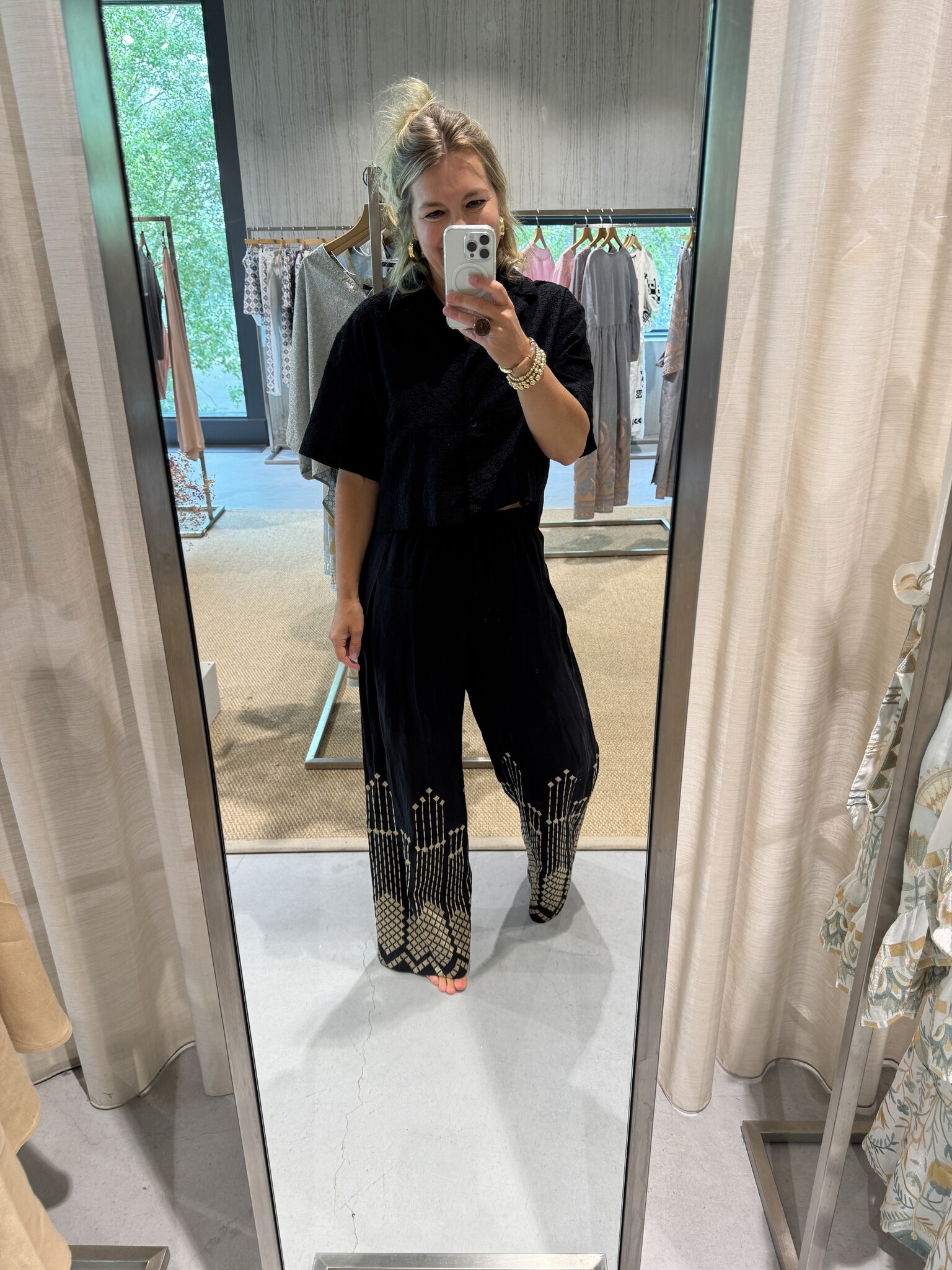 Greek archaic kori pants black gold