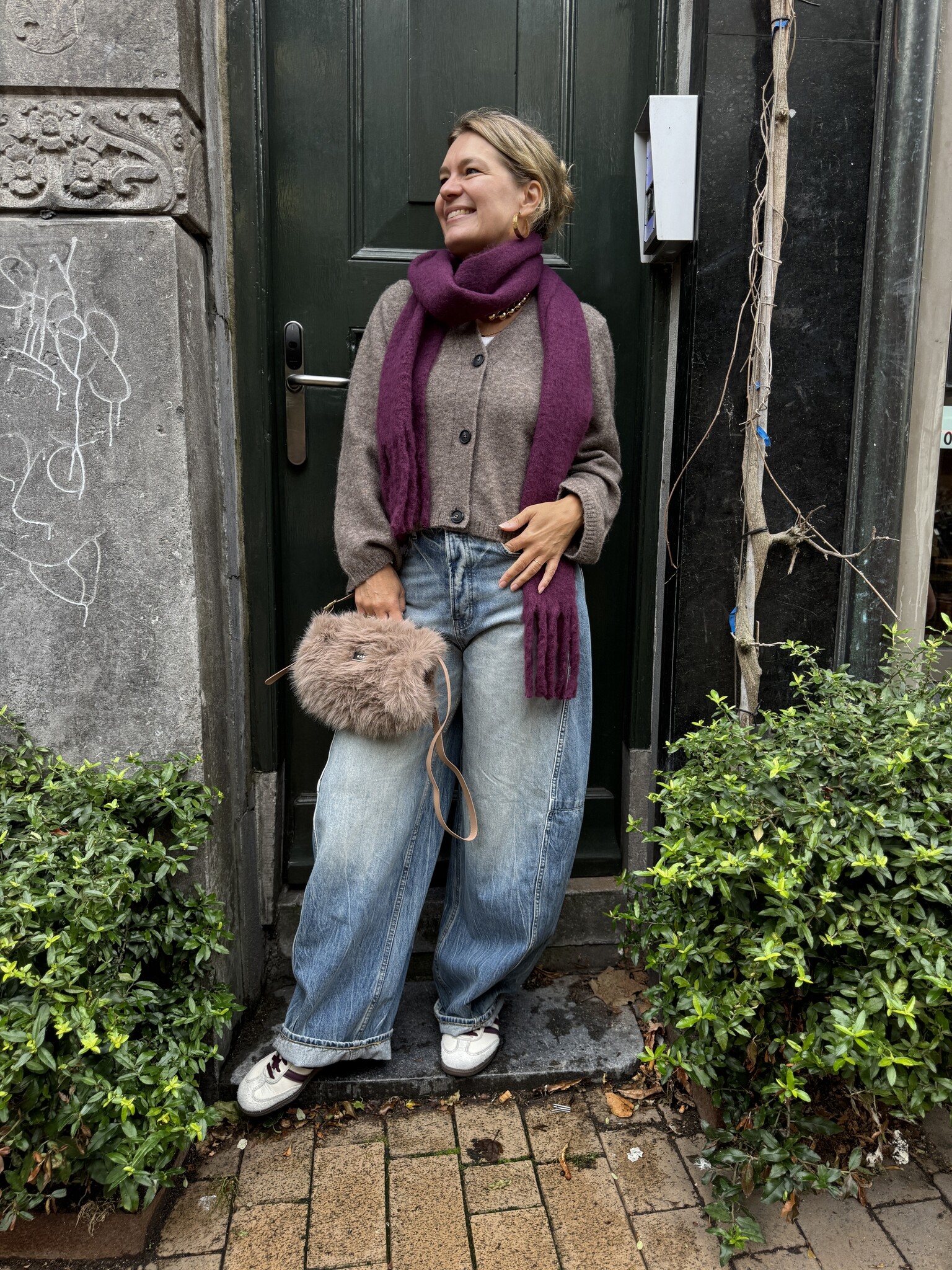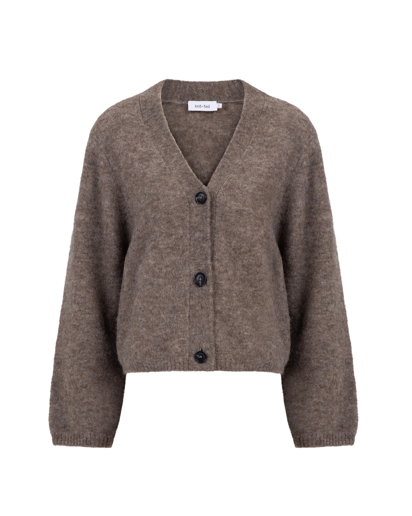 Bestseller vestje van Knit-Ted. Mooi bruin, 1 van de trendkleuren. Leuk op de bruine leerlook pant, ook goed op jeans. Hij valt op maat, losse mouwen en een kort model. Sybien draagt s. 32% Merinowol Extrafijn, 32% Alpaca Superfijn, 30% Polyamide, 6% Elas
