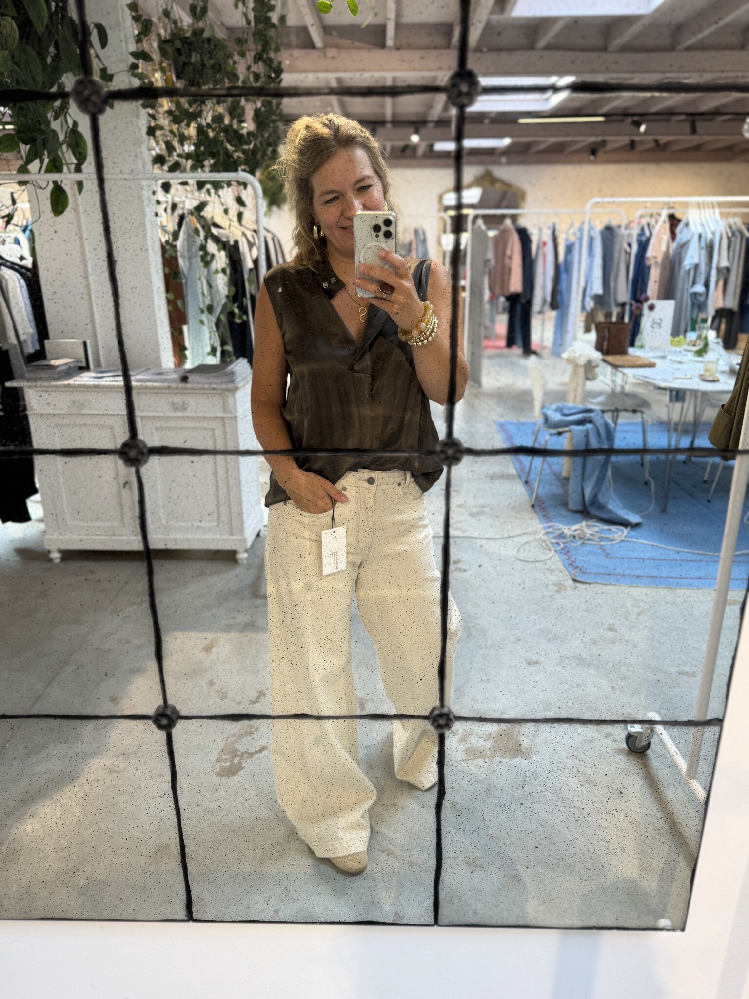 Aan verlanglijst toevoegenMy Essential WardrobeMEW estelle top major brown(0) €79,95 Op voorraad 34 36 38 40Size: *34363840Toevoegen aan winkelwagenInloggen voor wishlistDirect betalenGratis verzending Vanaf €100,-Vandaag verzonden? Je hebt nog 00 : 00 : 00BeschrijvingDelenMooie bruine, viscosemix top van My Essential Wardrobe. Hij valt losjes, wat zo hoort. Het is een wat langer model. Je kan hem tailleren met de tailleband, maar zonder bandje ook leuk. Facebook WhatsappToevoegen aan vergelijking