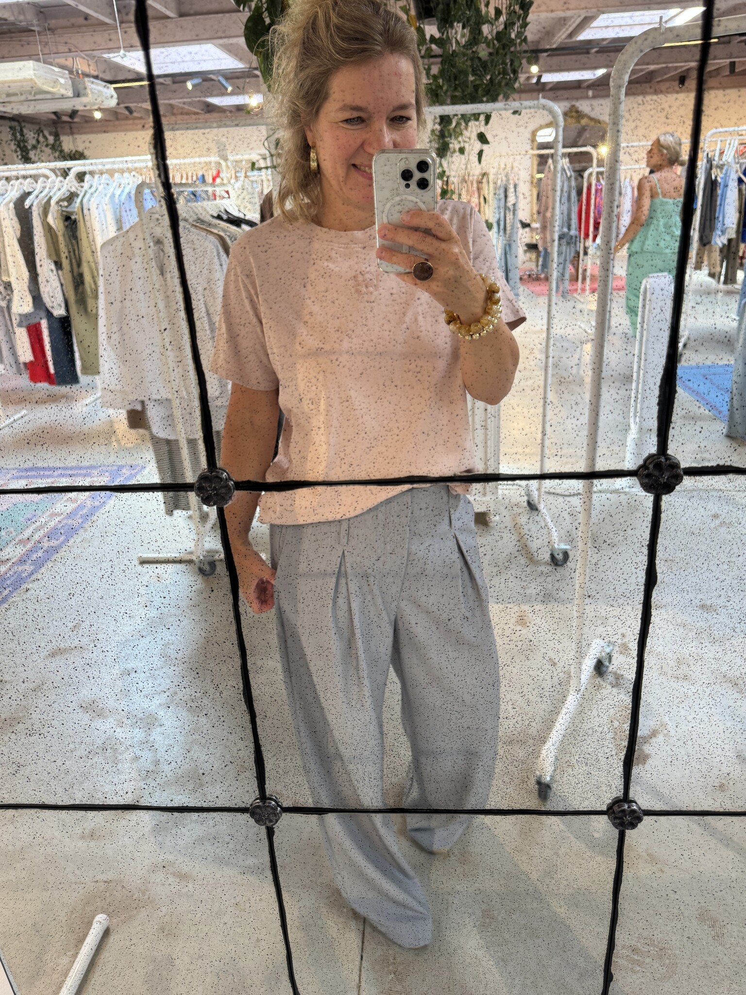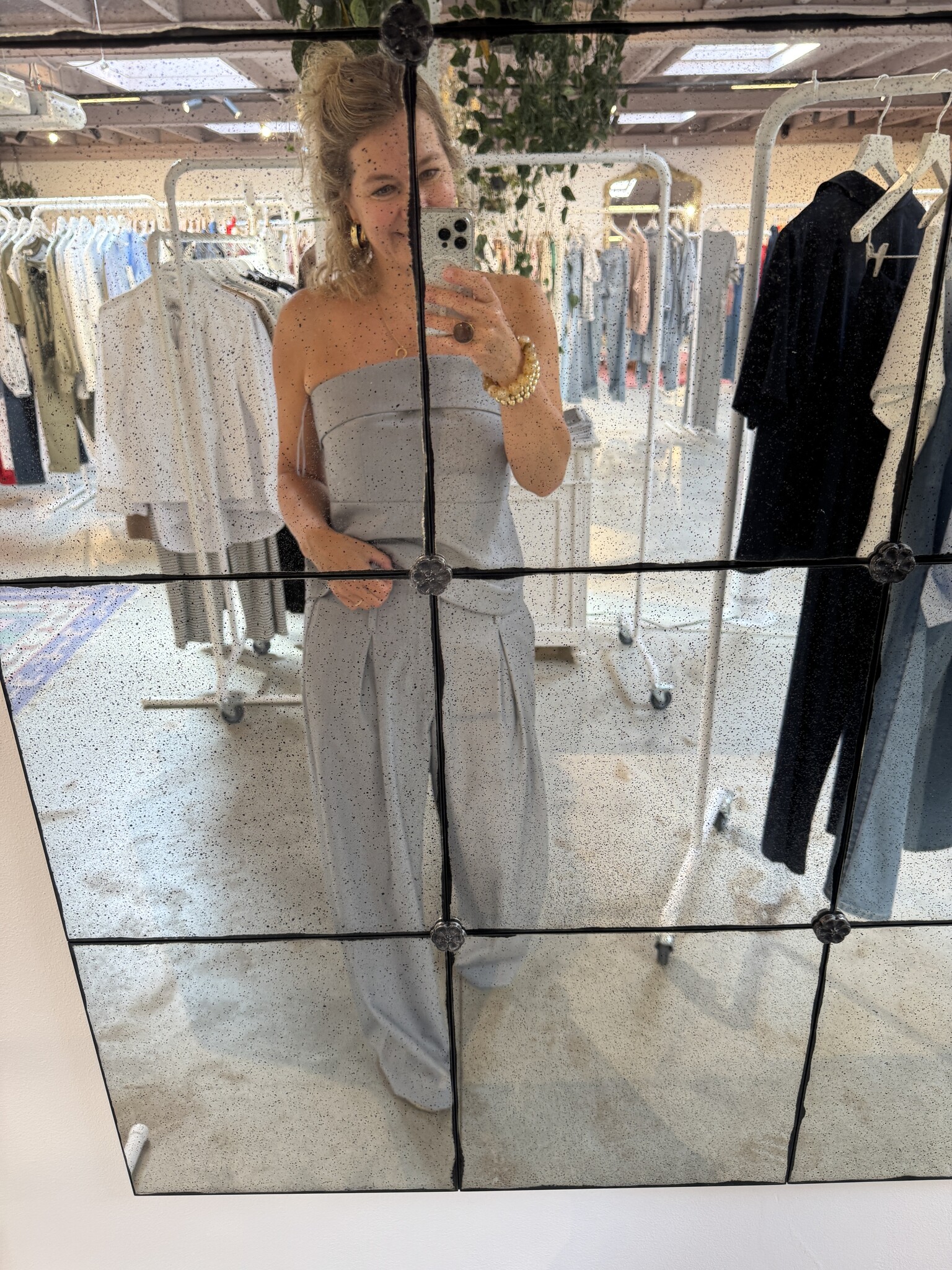 Hele leuke pantalon met een bijpassende strapless top van MEW. Hij valt op maat. Sybien draagt 38 (normaal 36) dus de broek zit wat losser. De pantalon is ook mooi met alle andere tops van MEW.