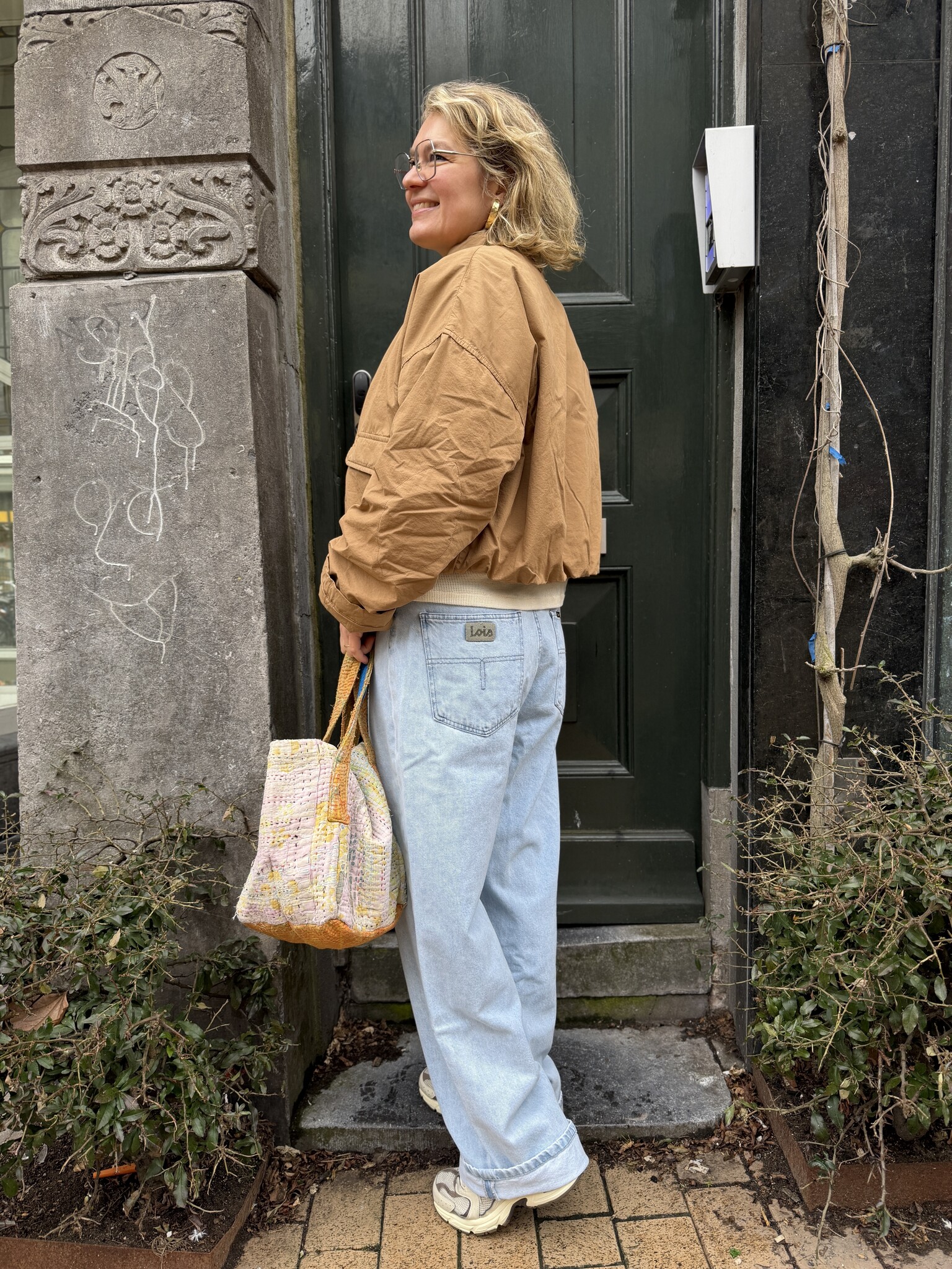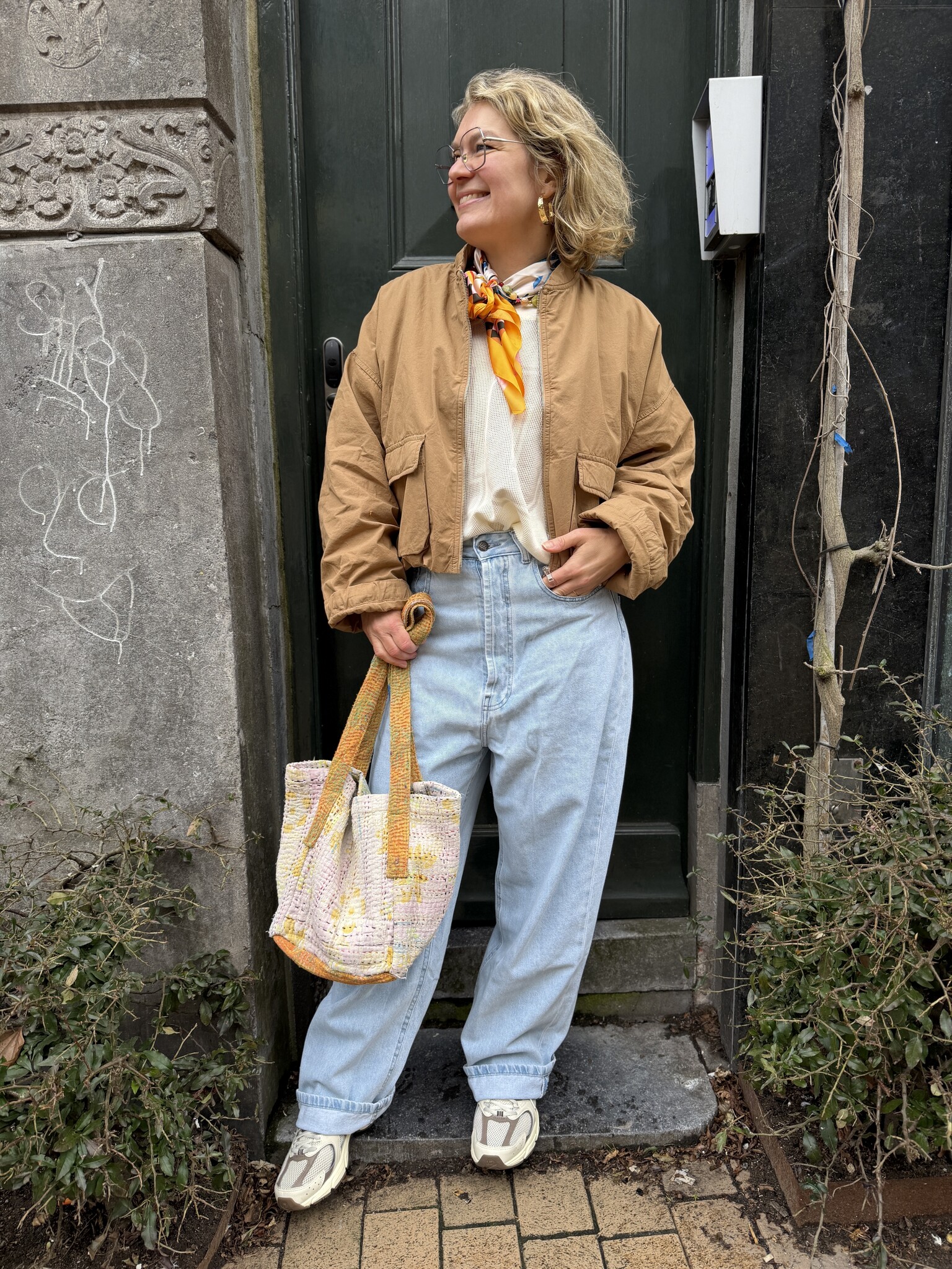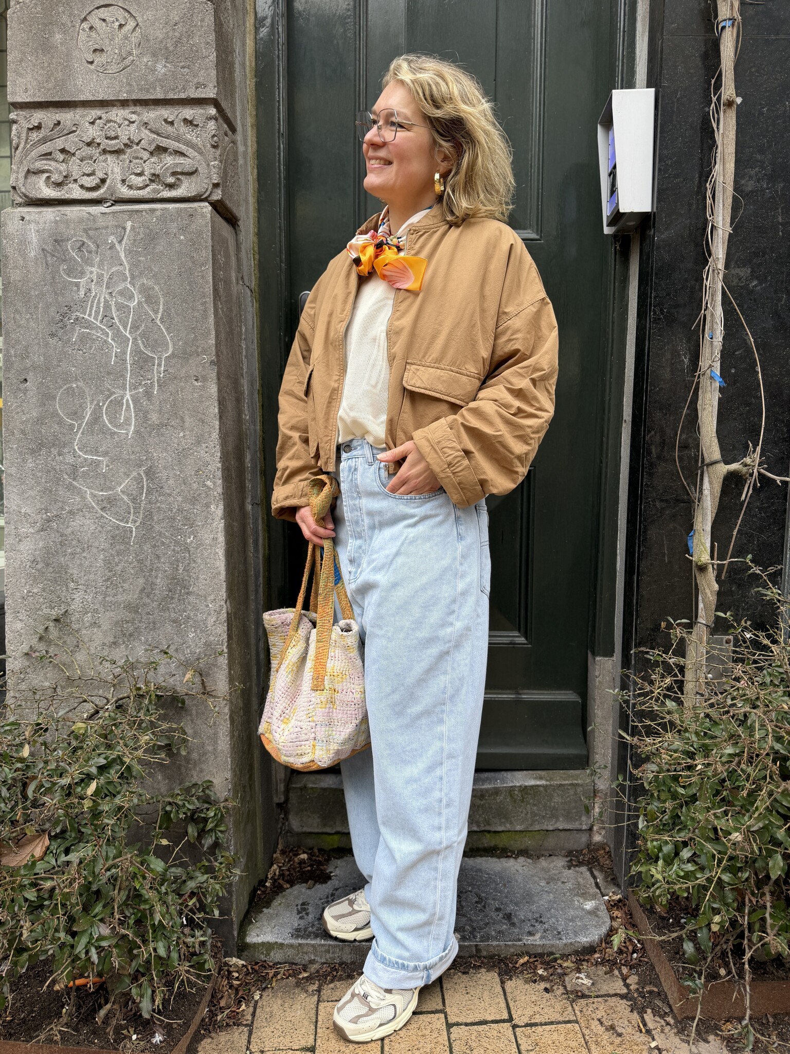 Leuk katoenen bomber/ballon jasje van Penn&Ink. Valt op maat en je draagt hem zowel binnen vroeg in het seizoen als buiten als de temperatuur wat hoger wordt. Sybien draagt 36 van het jasje.