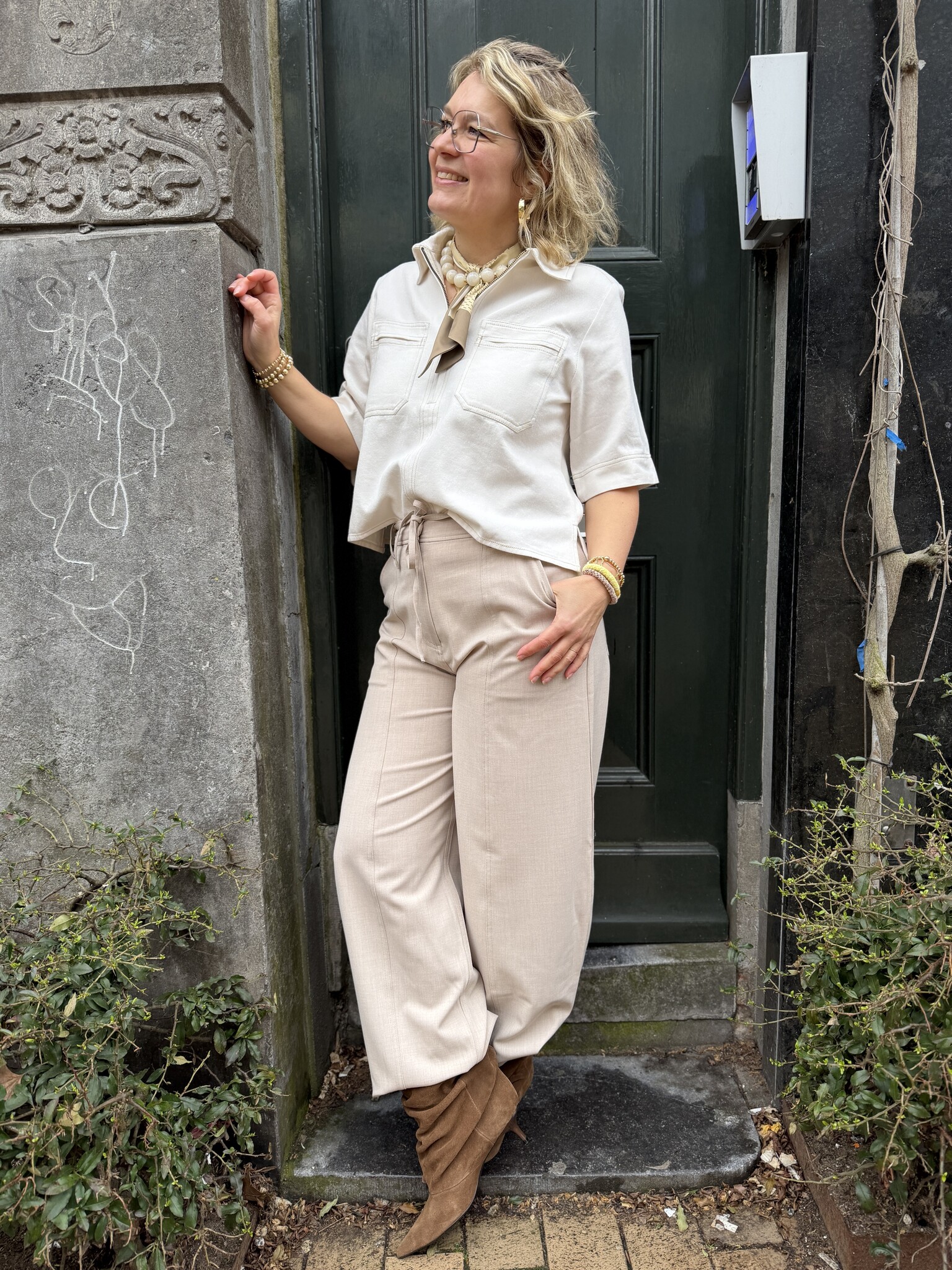 Super leuke pantalon van Second Female. Mooi setje met de blouse. Kan zakelijk of voor een feestje. Ook mooi met een knit. Valt op maat, Sybien draagt s, zit je tussen 2 maten neem de kleinste. Bij de enkel kan je hem aansnoeren voor meer ballon effect.