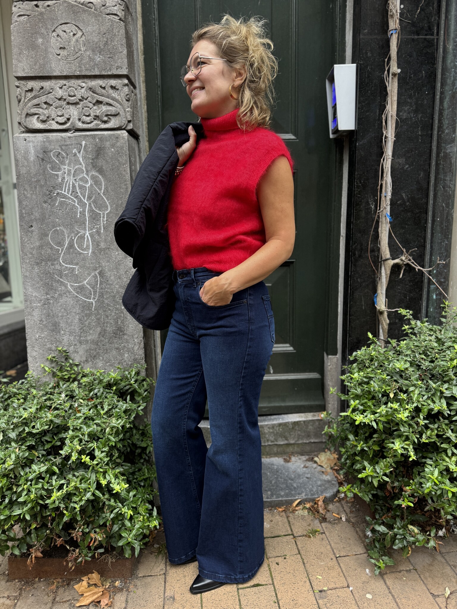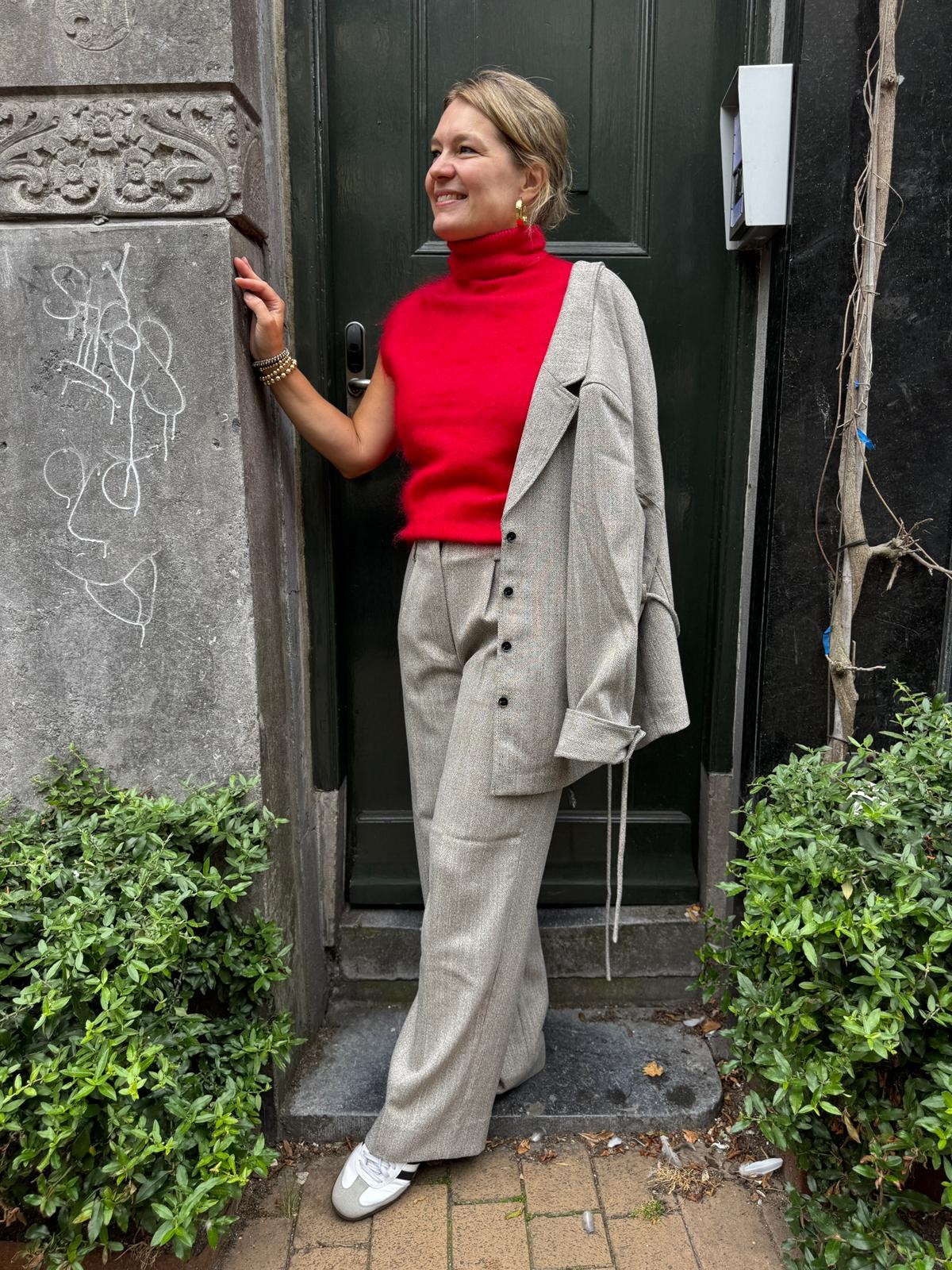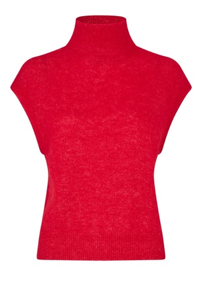 Fantastische kleur. Deze mooi spencer van Second Female. Echt een trendkleur rood én spencers zien we heel veel! Nu met blote armen, later met een blouse of top of onder een blazer. Hij is van 70% mohair, hele mooie kwaliteit! Hij valt losjes wel op maat.