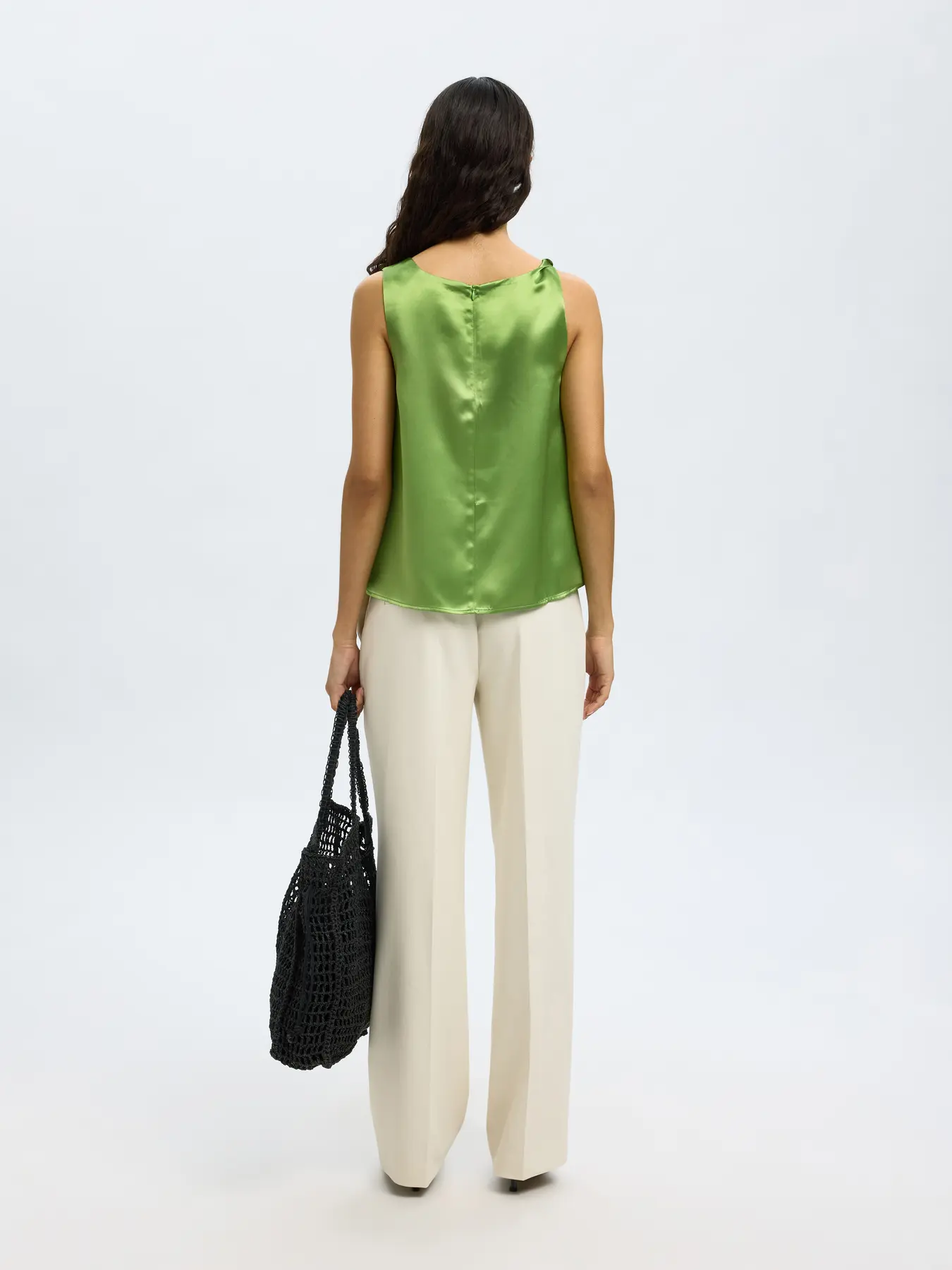 Mooie vrouwlijke zomerse top van Selected. Kan netjes op een pantalon of stoer op jeans. Leuk draaidetail aan ene zijde. Hij valt losjes op maat. Zit geen stretch in. Hij is van luchtige stof. Composition: 100% Cellulosic acetate – Naia™