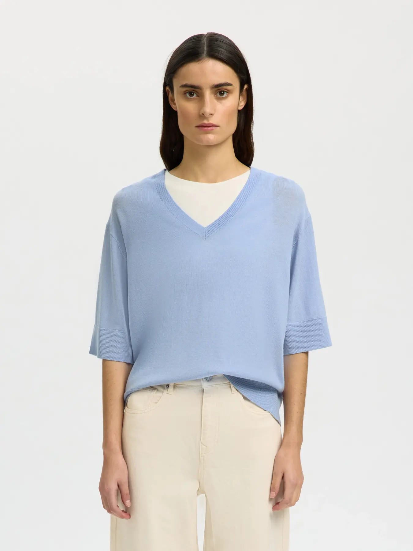 SF thea knit merino v-neck blue