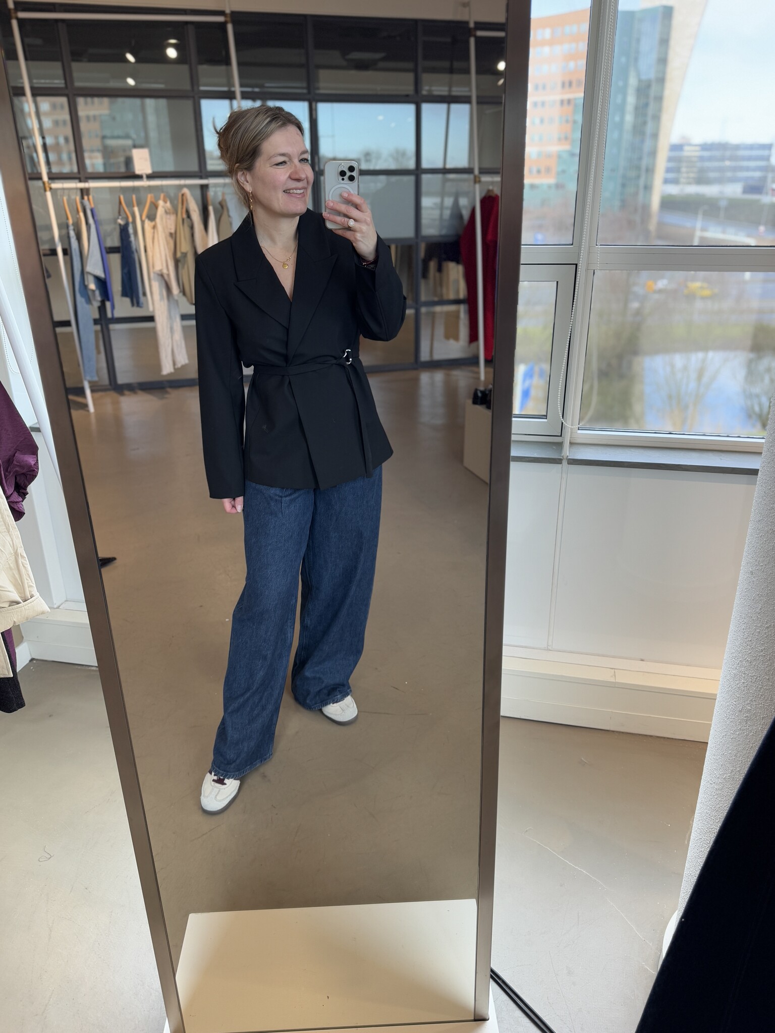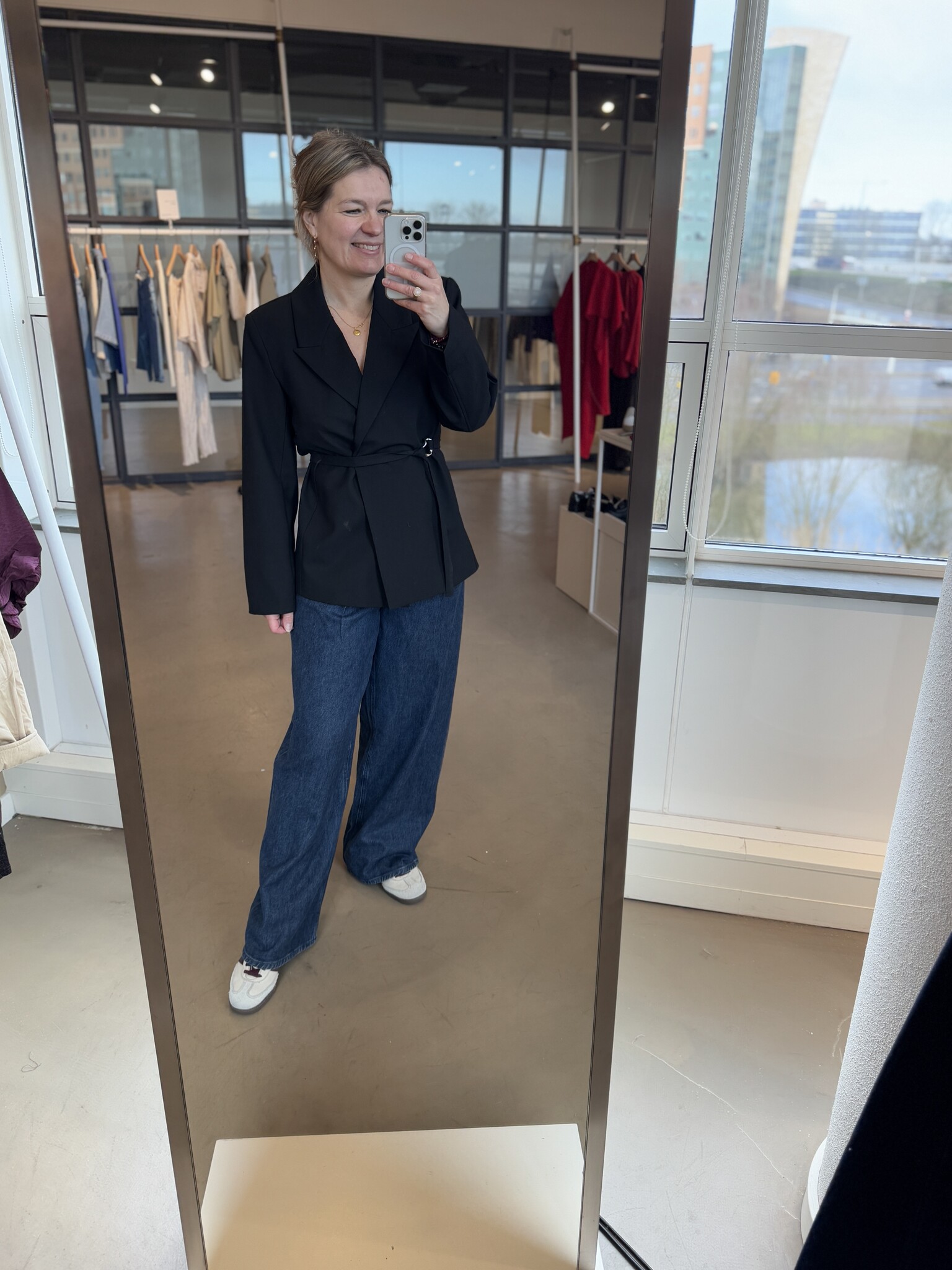 Aan verlanglijst toevoegenSelected FemmeSF aila blazer black(0) €169,99 Op voorraad 34 36 38 40 42Size: *3436384042Toevoegen aan winkelwagenInloggen voor wishlistDirect betalenGratis verzending Vanaf €100,-Vandaag verzonden? Je hebt nog 00 : 00 : 00BeschrijvingDelenPrachtige vrouwelijke blazer van Selected. Valt mooi en soepele stof. Valt op maat Sybien draagt 36. Het taillekoord kan er ook af. Composition: 58% Polyester - Recycled, 18% Viscose - Tangcell™ EcoTang™, 18% Wool - RWS, 6% Elastane Facebook WhatsappToevoegen aan vergelijking