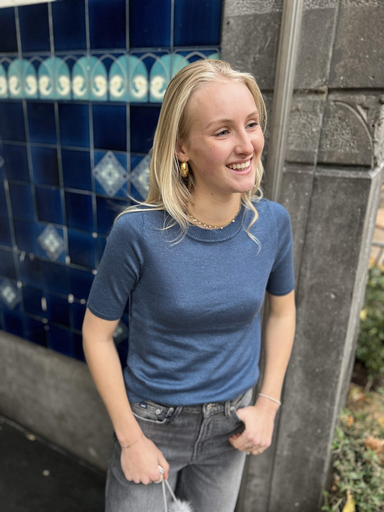 SF lulu sl button o-neck vest cashmere blue