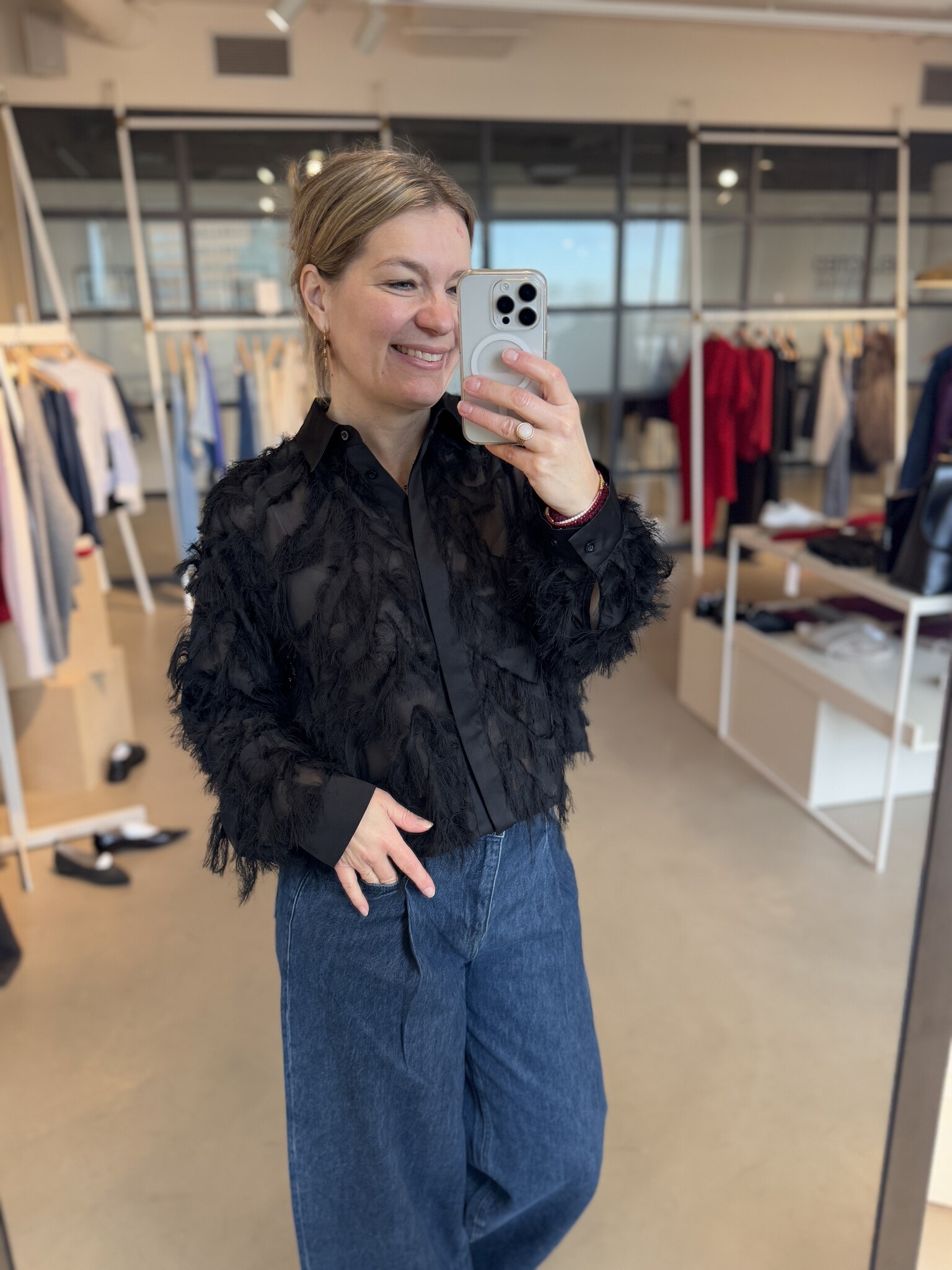 Aan verlanglijst toevoegenSelected FemmeSF myline ls fluffy cropped shirt black(0) €69,99 Op voorraad 34 36 38 40 42Size: *3436384042Toevoegen aan winkelwagenInloggen voor wishlistDirect betalenGratis verzending Vanaf €100,-Vandaag verzonden? Je hebt nog 00 : 00 : 00BeschrijvingDelenLeuke en trendy blouse van Selected. Hij is licht doorschijnend met allemaal fringles eraan. Hij is van polyester en valt op maat. Facebook WhatsappToevoegen aan vergelijking