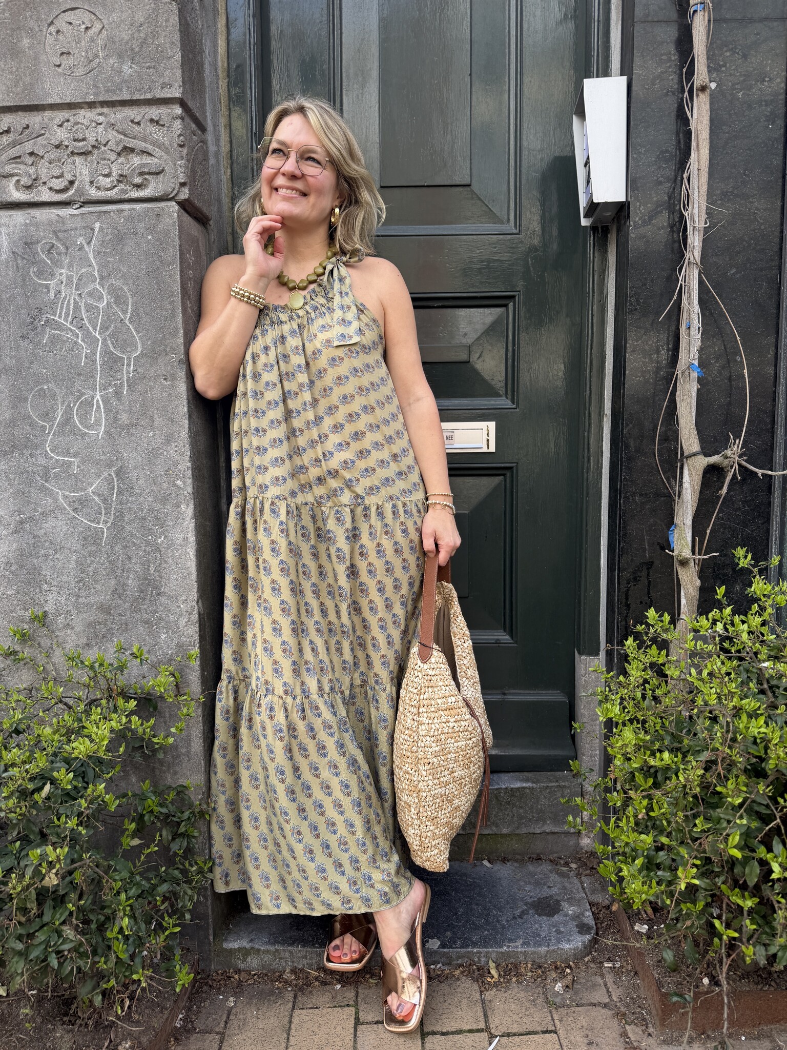 Mooie one shoulder dress van Sissel Edelbo. Met stroken, beetje Ibiza vibe, heel leuk voor de zomer. Alles is van gerecycelde saridoeken, geheel duurzaam. Daardoor kunnen er oneffenheden in de stof zitten. Geen 1 blouse of jurk is hetzelfde, altijd uniek.