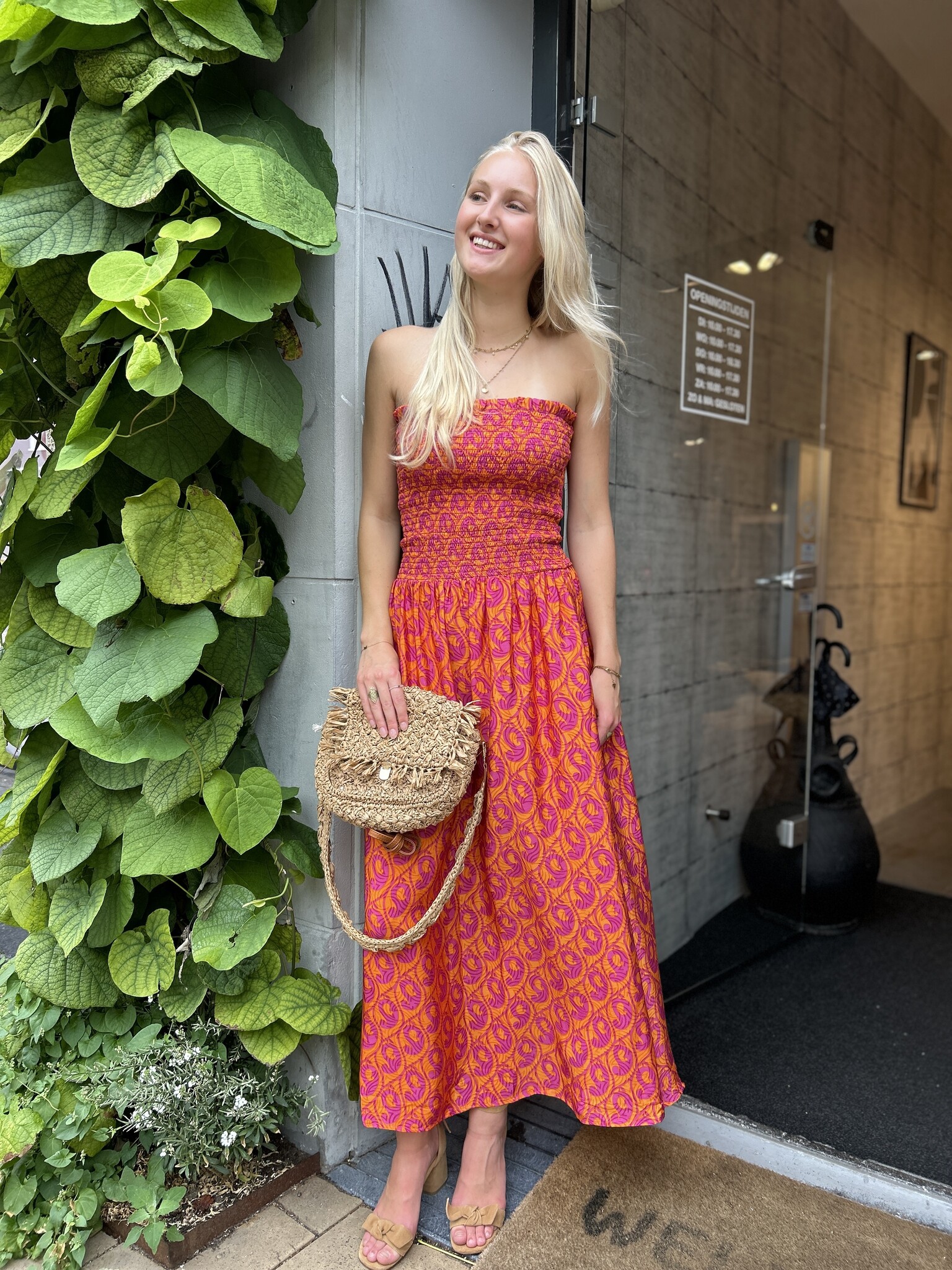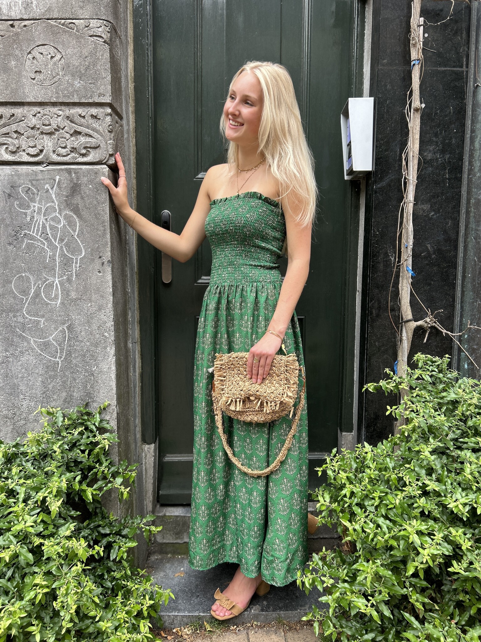 De jess dress is van vintage saridoeken . Ze zijn duurzaam en uniek. Van elke print en kleur is er maar 1. Er kunnen onvolkomenheden zitten in de stof. De jess dress is one size.