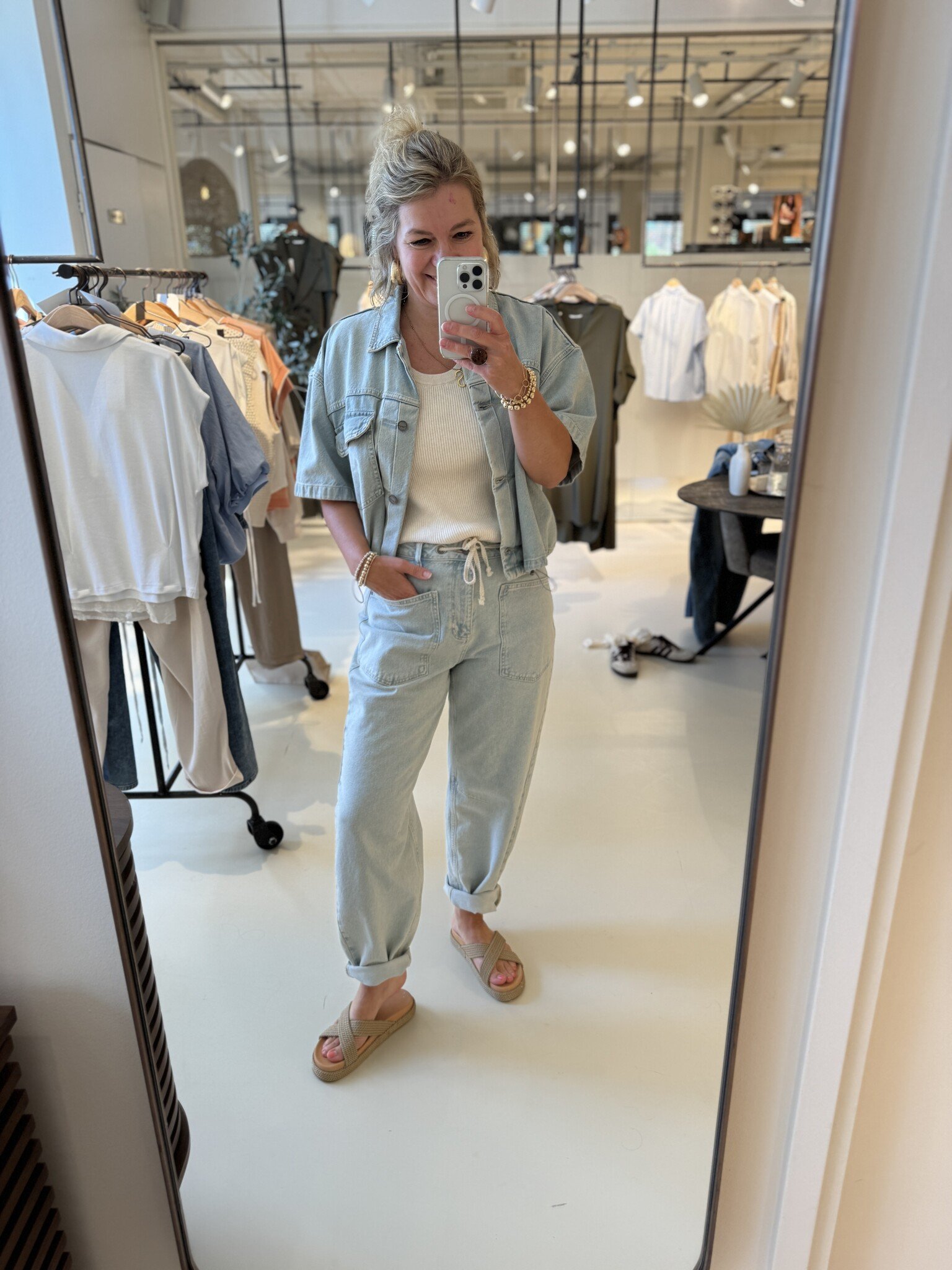 Aan verlanglijst toevoegenYayaYaya colored worker light dnm jeans(0) €99,95 Op voorraad 34 36 38 40Size: *34363840Toevoegen aan winkelwagenInloggen voor wishlistDirect betalenGratis verzending Vanaf €100,-Vandaag verzonden? Je hebt nog 00 : 00 : 00BeschrijvingDelenLeuke stoere denim van Yaya met een barrel fit en zakken. Een leuke set met het jasje. Hij valt op maat en heeft een losse fit. Hij is van katoen. Facebook WhatsappToevoegen aan vergelijking