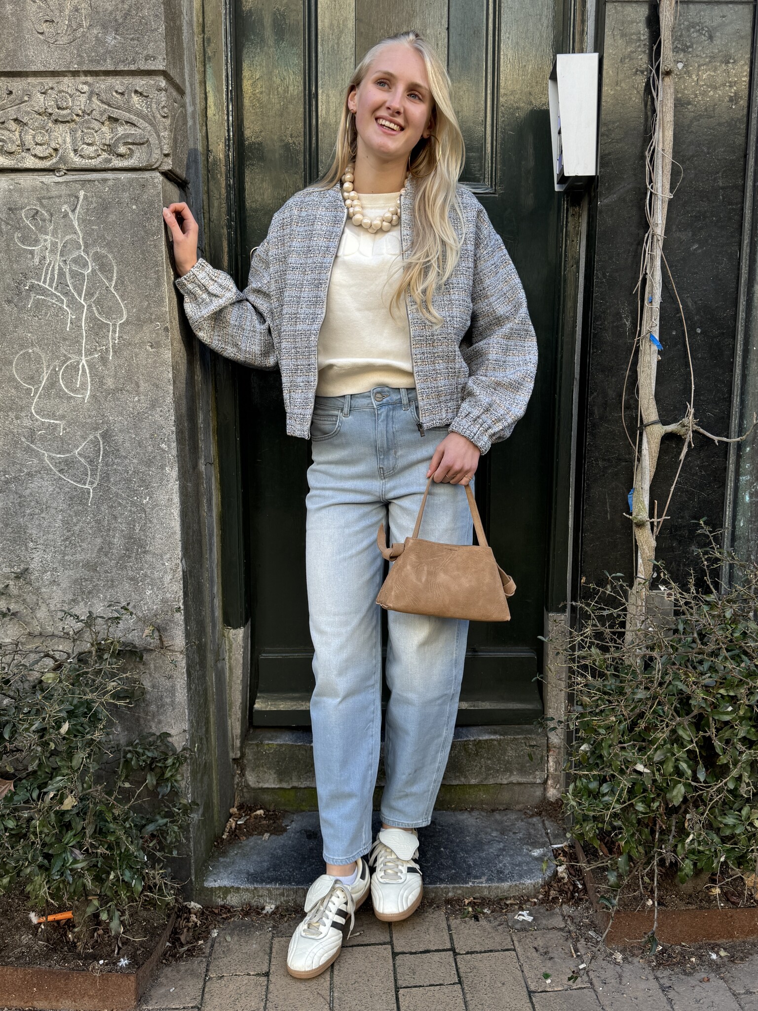 Aan verlanglijst toevoegenYayaYaya short boucle jacket blue(0) €139,95 Niet op voorraad 34 36 38 40 42Size: *3436384042Niet op voorraadInloggen voor wishlistGratis verzending Vanaf €100,-BeschrijvingDelenLeuk boucle jasje van Yaya met een lichtblauw ruitje. Hij valt losjes, het is een bombermodel met elastiek in de taille. Sybien draagt m. Facebook WhatsappToevoegen aan vergelijking