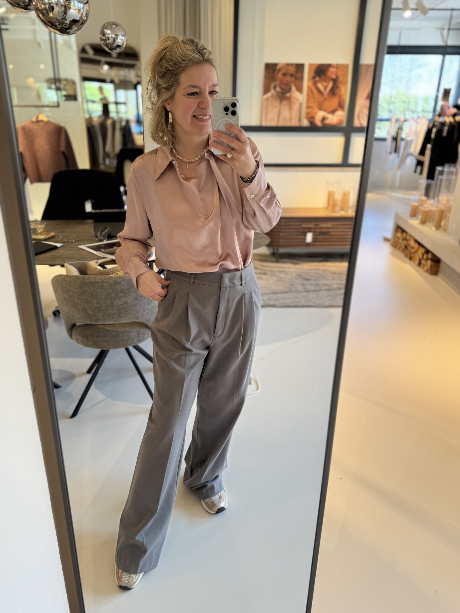 Yaya YAYA satin blouse gray/pink